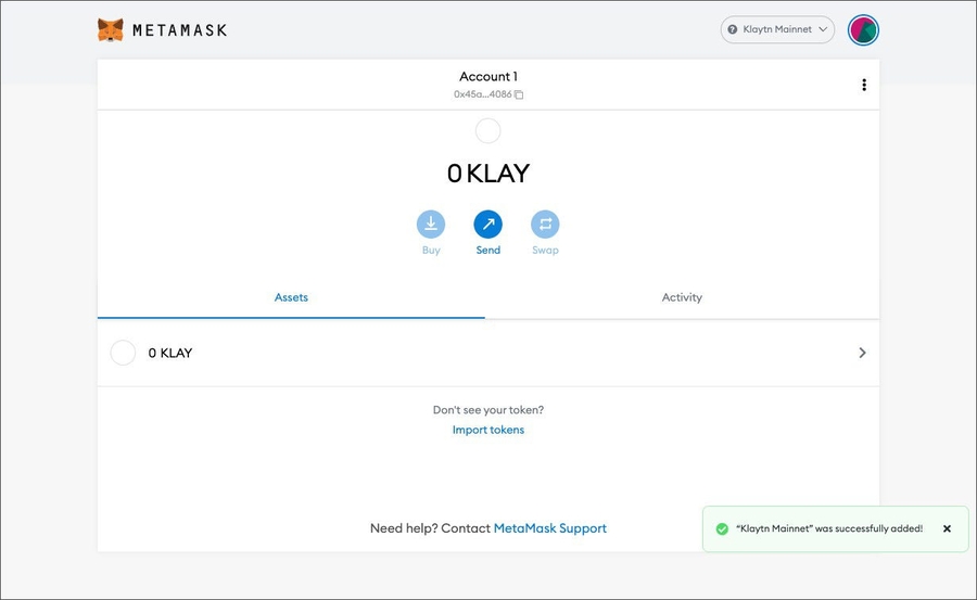 Step 4 Klaytn is now added to your MetaMask wallet!