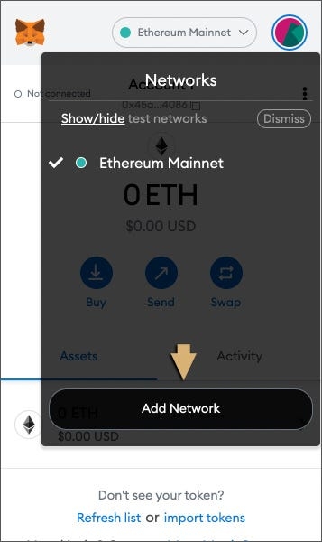 Step 1 In your unlocked MetaMask wallet, click the network dropdown at the top.